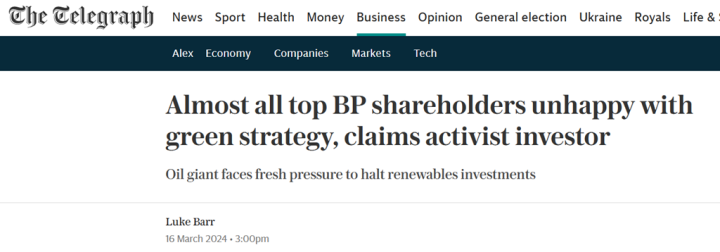 Almost all of BP’s biggest shareholders are unhappy with its shift to green energy, an activist investor has claimed, amid a growing backlash over the oil giant’s focus on net zero targets.