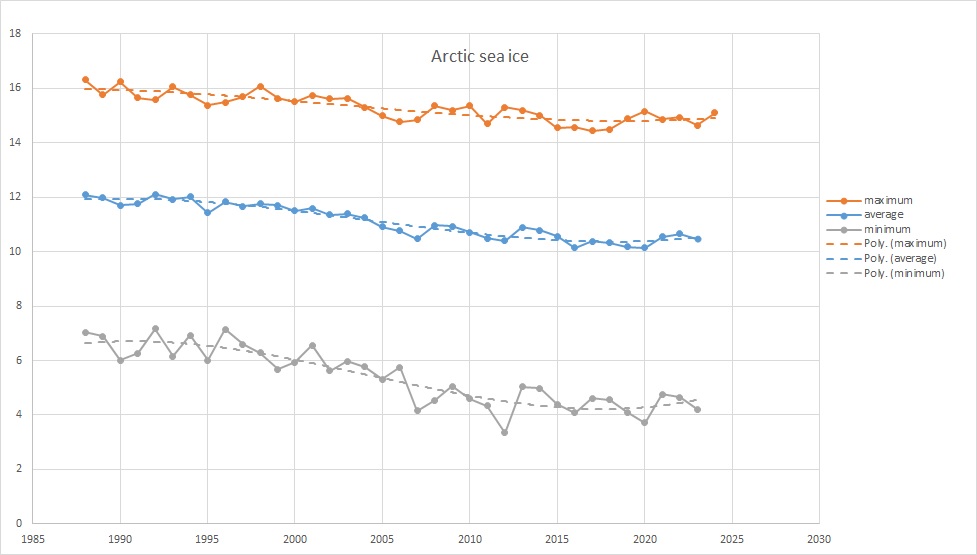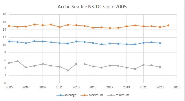 AMO is just detrended North Atlantic SST. It’s arbitrary. But yes, AMO and Arctic sea ice will move roughly together. The difference is, the AMO is considered even by the consensus to be natural oscillation and when it starts cooling significantly, no problem for the consensus. When Arctic sea ice starts increasing significantly and longer term (~20-30 years), it’s “beginning of the end” of the BS.