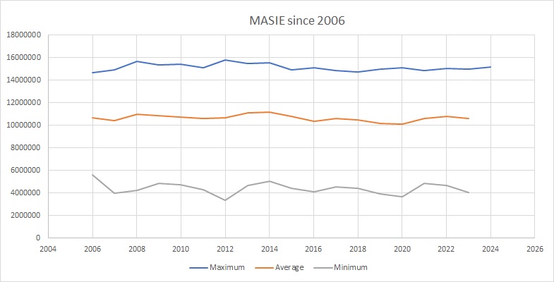 Maximum this year was slightly higher than the maximum in 2005 and only fractionally less than 2024.