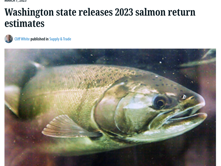 The Seattle Times describes famine times for fish, but salmon returns were UP for all areas of Washington State.