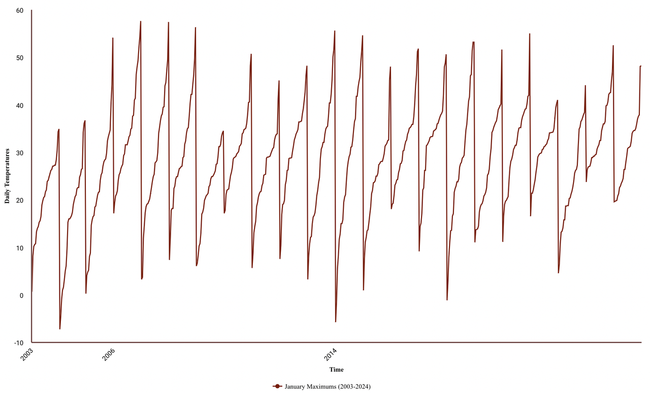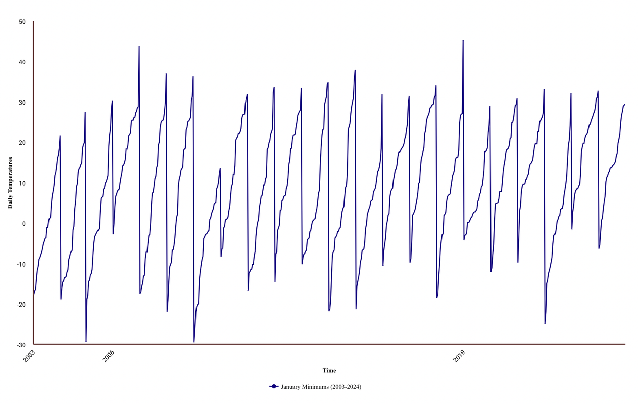 You can’t look at a graph of temperatures and know *anything* about what is actually going on. It is *energy* content that is important and temperature is a piss-poor metric for energy, i.e. enthalpy.