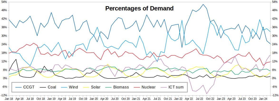 – ESO = Solar + “Embedded Wind” + Interconnectors (my “ICTs” column, which includes the Moyle and East-West links to the “island of Ireland” grid / EirGrid)