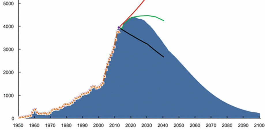 In a paper authored by Chinese academics in 2017, there was this graph of their best estimate of the trajectory of Chinese coal production: