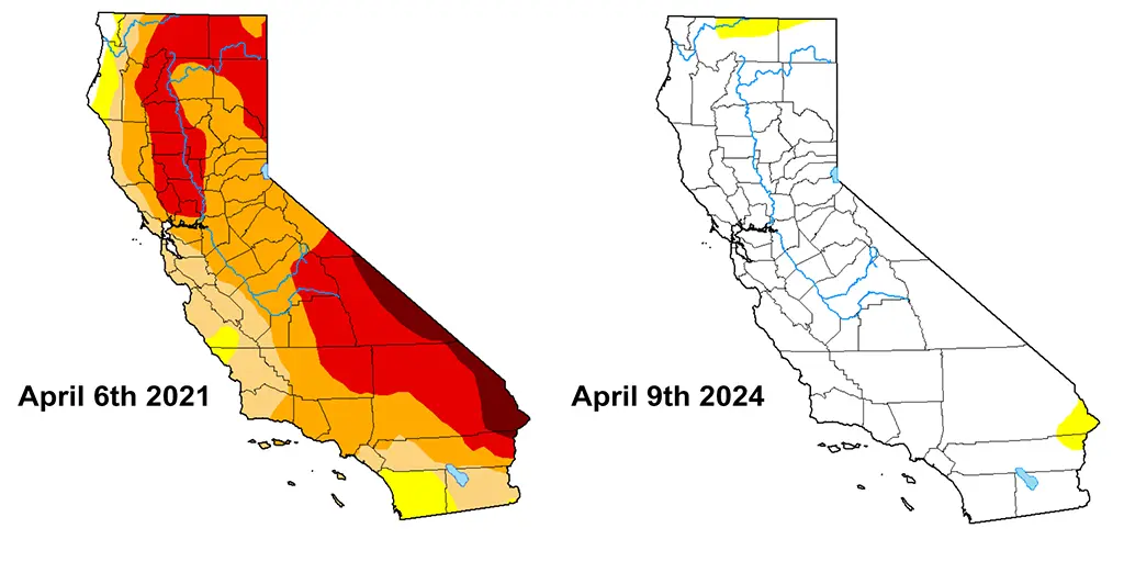 According to the Drought Monitor analysis released Thursday, all of northern California north of Interstate 80 is now free of drought.