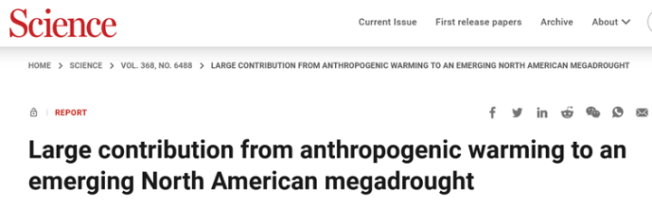 According to the 2020 study in Science cited earlier, human-caused climate change made southwestern drought conditions between 2000 and 2018 about 46% more intense than they would have been naturally, “pushing an otherwise moderate drought onto a trajectory comparable to the worst [U.S. southwest] megadroughts since 800 CE,” the heyday of the Mayan civilization.