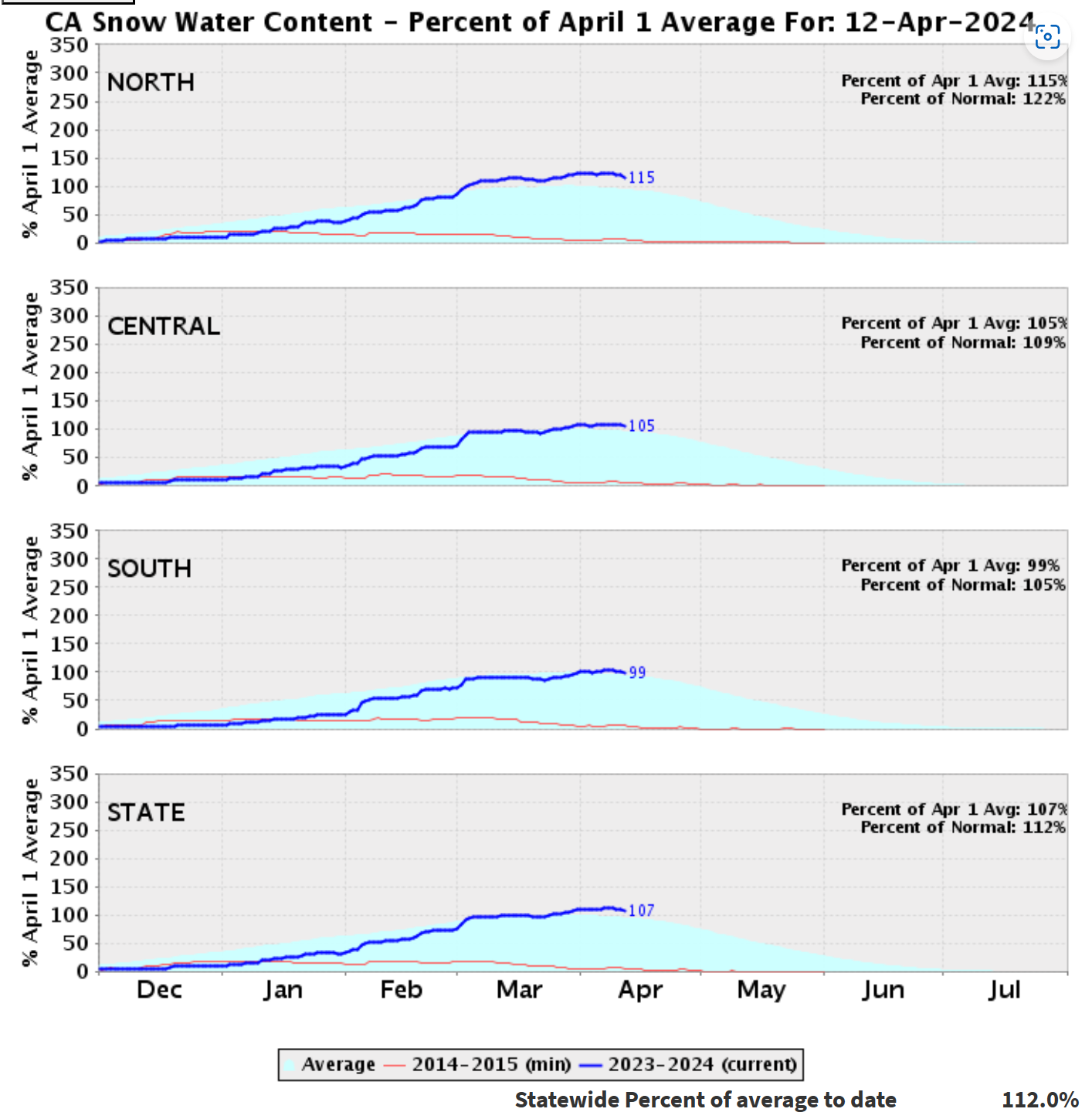 And here is the current SWE for California. Not a record, but still 112% of average