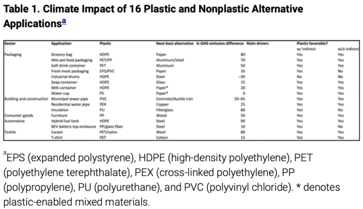 Talk about an inconvenient conclusion. The scientists found that in the 15 applications covering the five key sectors of packaging, building and construction, automobiles, textiles and consumer durable, plastic products released 10% to 90% fewer emissions across the product life cycle. “Furthermore,” the scientists observe, “in some applications, such as food packaging, no suitable alternatives to plastics exist.”