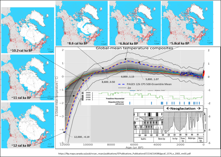 The CPS method best represents what we know about the evolution of the Holocene climate. The other four methods show very little temperature change from 9,500 years ago up until 1850 AD… A period when we know that there was massive ice retreat over the first 5,000 years and ice advance (Neoglaciation) over most of the next 4,500 years. CPS is the only one of the five methods consistent with the Holocene evolution of ice sheets and glaciers in the Northern Hemisphere.
