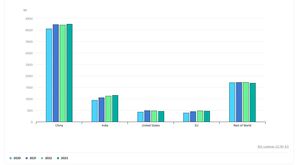 The illusion is kept alive by all the developed nations burdening China with the task of burning ever more coal to make the stuff needed for the transition. The whole effort is building huge dependence on Chinese coal mining and acquisition.