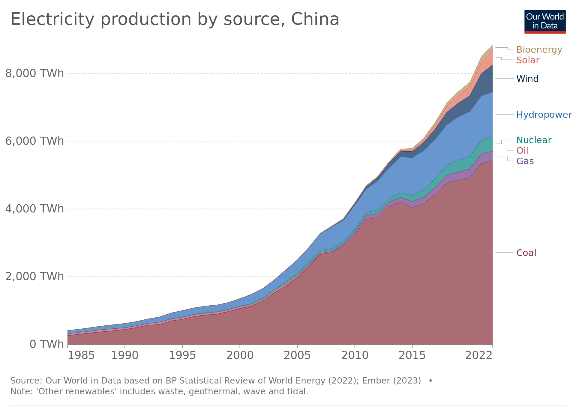As you are so into wind you will be pleased to know that it managed to produce only 9% of China’s electricity in 2023.