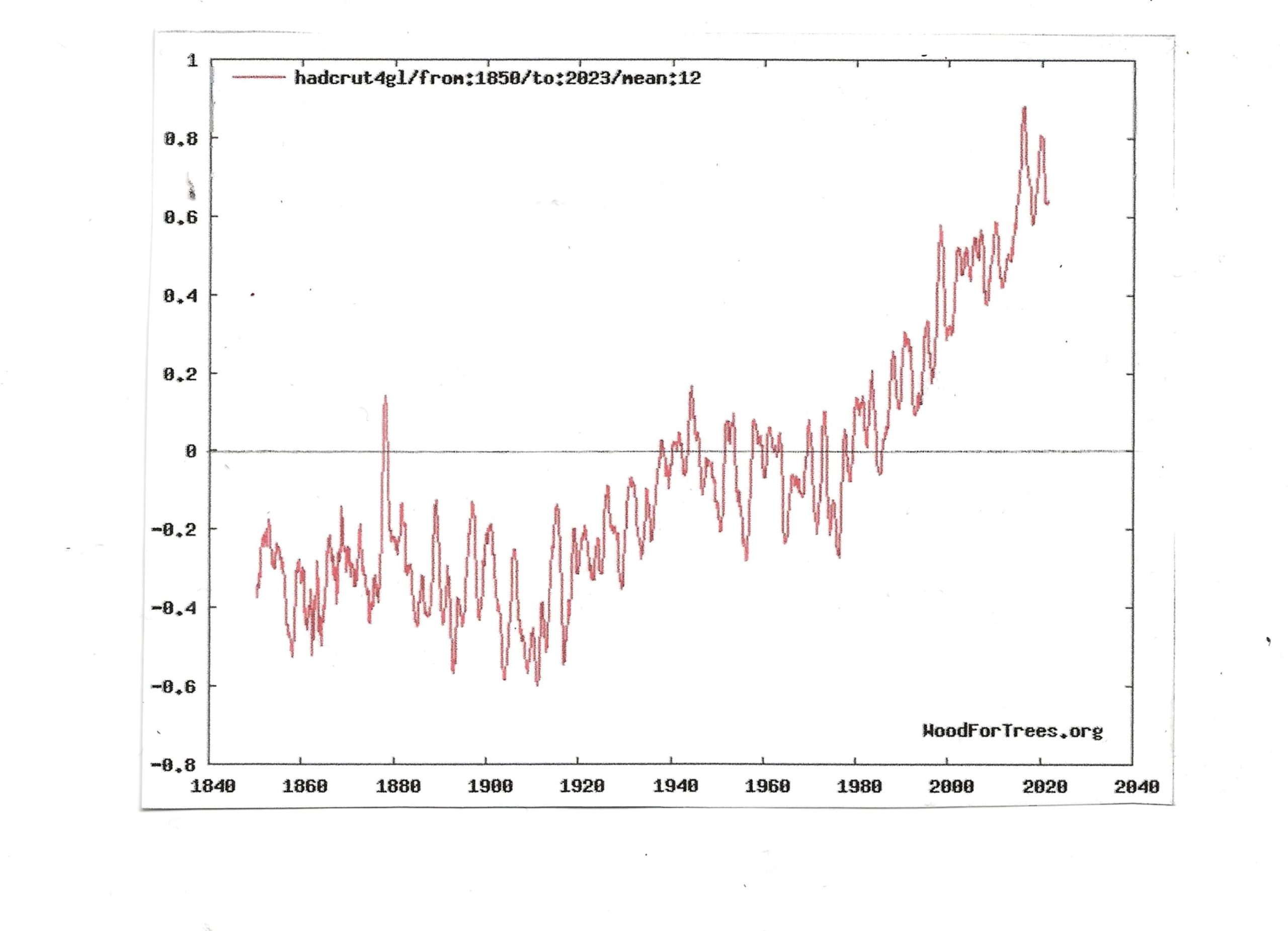 Go to Woodfortrees;org. Select interactve in tool bar, then global temperatures 1850-2023