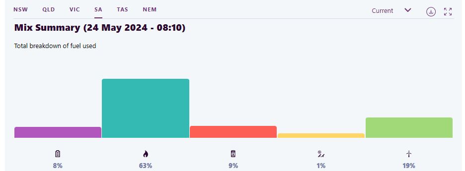 Middle of the day, and South Australia is running on 73% GAS, 7% diesel. !