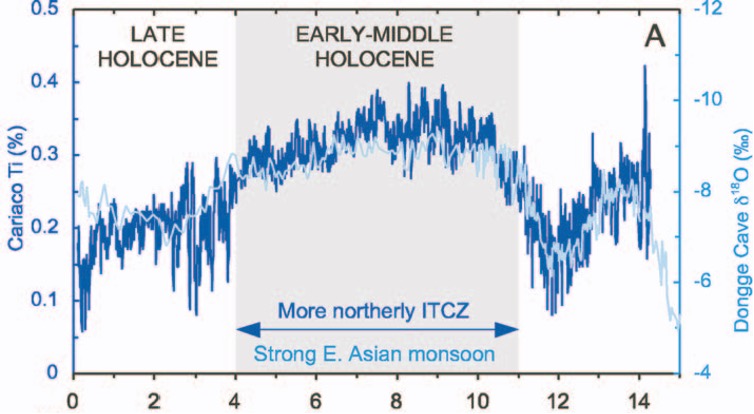 The last 150 years has witnessed the ITCZ migrating northward as sunspots exhibited a maximum, bringing a warm rebound from the LIA (graphic E). Small changes in solar irradiance are not enough to warm the climate directly. However small changes in solar irradiance affects the ITCZ which then has global impacts that can have bigger warming effects.