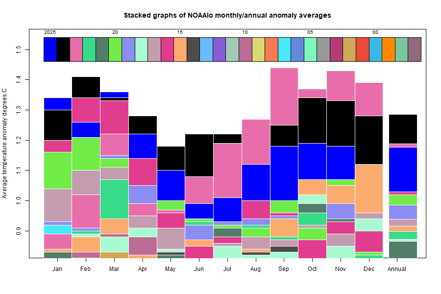 Yes, it does. But globally May was still by far the hottest May in their record, and caps a full year of record breaking months. You can see this history in detail in this stacked graph of global anomalies, where each month is shown with the color for its year (2024 is dark blue). May in fact exceeded its record by the most of months in 2024. It’s getting hotter.