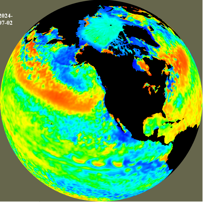 Yes, as often, there has been cold water on the coast of California. Here is a broader view on 2 July (my most recent)