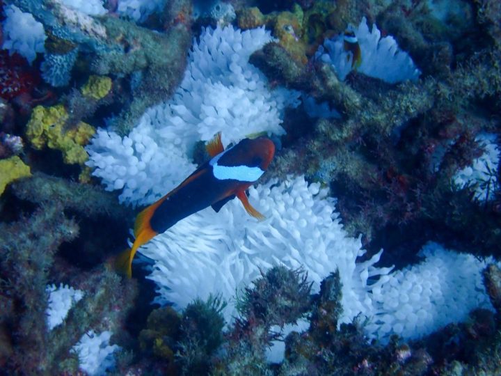 And so, the bleached anemone (Entacmaea quadricolor) with the help of its symbiotic clowns, is making the very most of the demise of the corals.