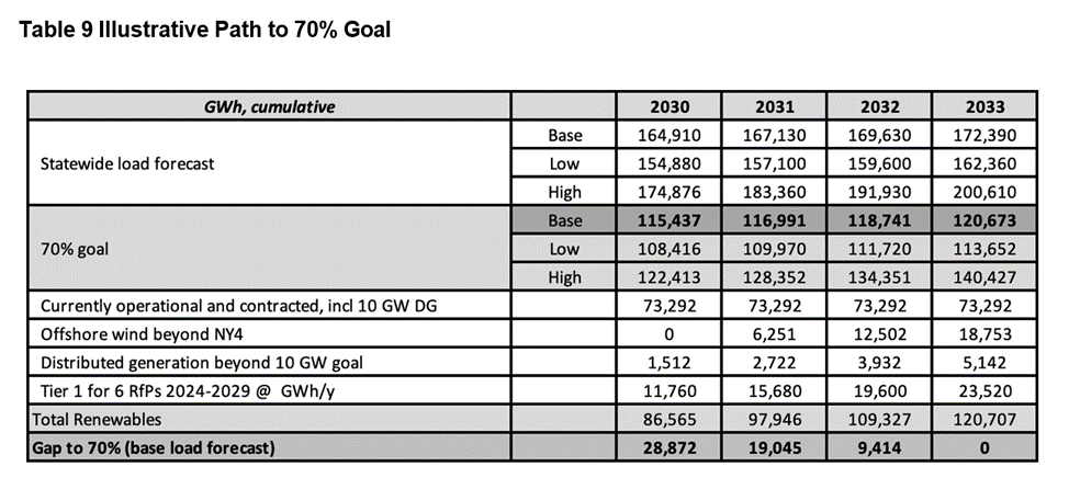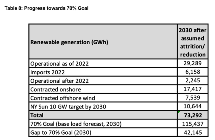 Even under the revised assumptions the PSC projects that the 70% renewable energy goal will not be achieved until 2033 when the historic renewable resource deployments are considered. They still cannot let go of the narrative that the renewable resources can be deployed on a schedule that is close to the Climate Act mandates. I do not think this approach is feasible.