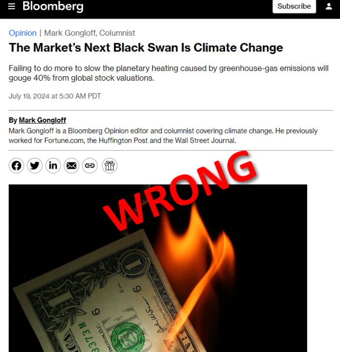 In the end, since climate change is not causing increasingly extreme weather, it cannot be causing increasing business losses – which the data shows it is not. My advice to investors? Follow the data, not the money, and suggest Mark Gongloff of Bloomberg take a “chill pill.”
