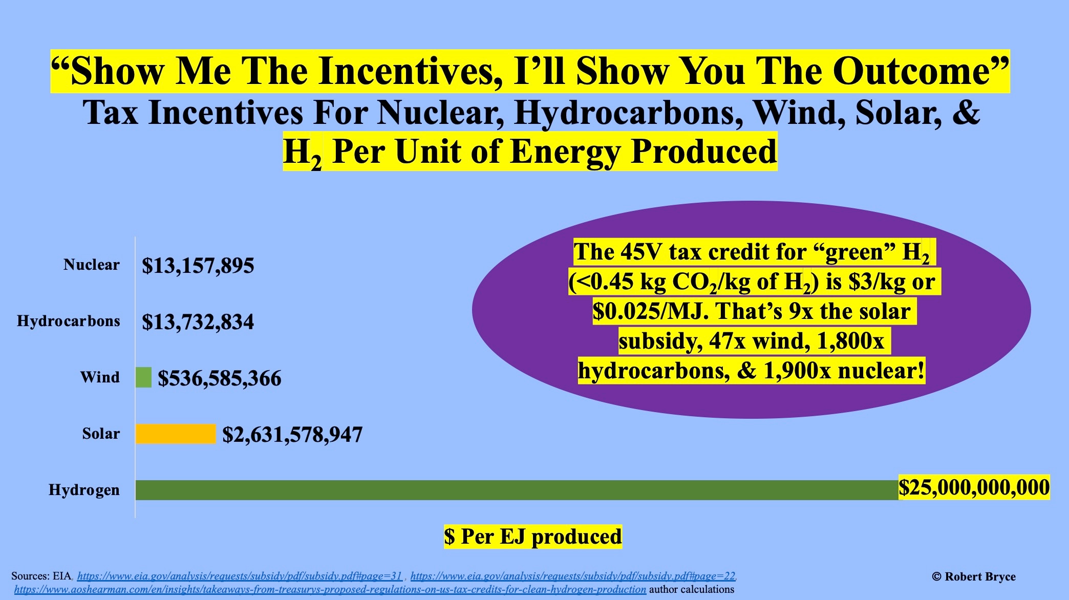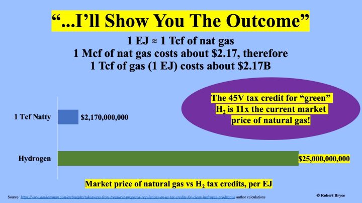 Hydrogen producers can get up to $25B per EJ in federal tax credits! That’s 9x solar, 47x wind, & 1,800x hydrocarbons; I’ll be talking H2 & alt-energy in Eldorado, TX on Thursday