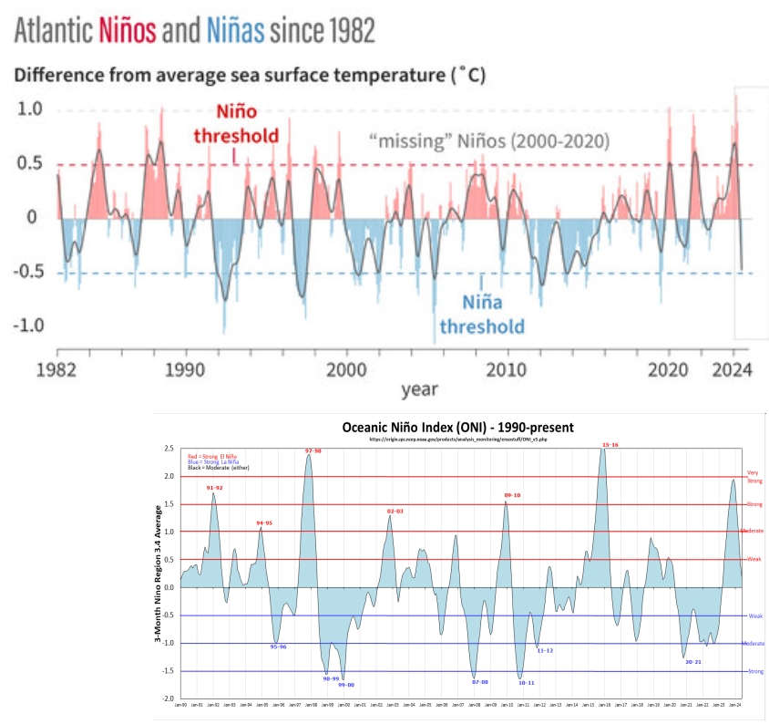 Nick’s remarks are exactly aligned with the NOAA’s comment, which reads in full, “Never before in the observed record has the eastern equatorial Atlantic swung so quickly from one to another extreme event.” Emphasis mine.
