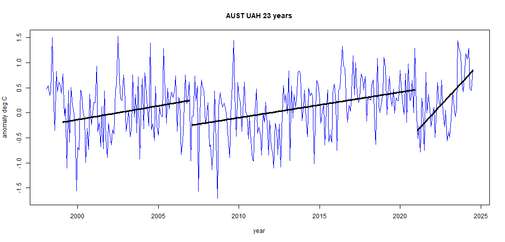 The reason that Australia did not see records last year was because of the Brushfire particulates in the Stratosphere, in which the biggest fires were from 2019 – March of 2020. You can see on the middle plot of Australia UAH LT that temps were down considerably from 2021 until mid 2023. The particulates are gone now, and Australia is getting more sunlight. These are July values; it will be mid-month before August data is downloadable. The Stratosphere over Australia has been quite busy since 2016.