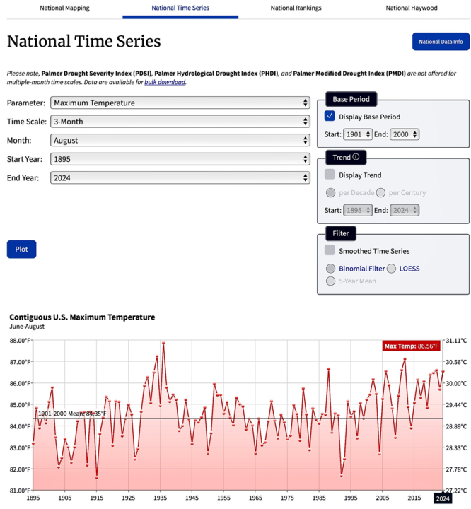 Steve Milloy’s one-minute video looking at the temperature data: Exposed: Summer 2024 cooler than 1934 in the US