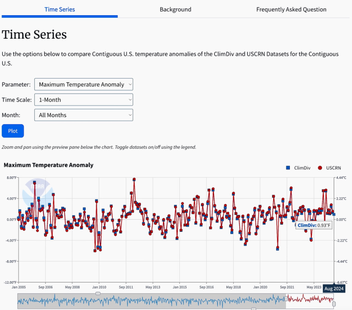The second statement is falsified by the observation that between 2005 and 2024 (today) the USCRN graph shows an average rise of about 0.5 °C . . . that works out to about +0.25 °C per decade, far below your claim of +0.34 °C per decade.