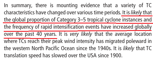 So when they say ” It is likely that the global proportion of Category 3–5 tropical cyclone instances and the frequency of rapid intensification events have increased globally over the past 40 years. “