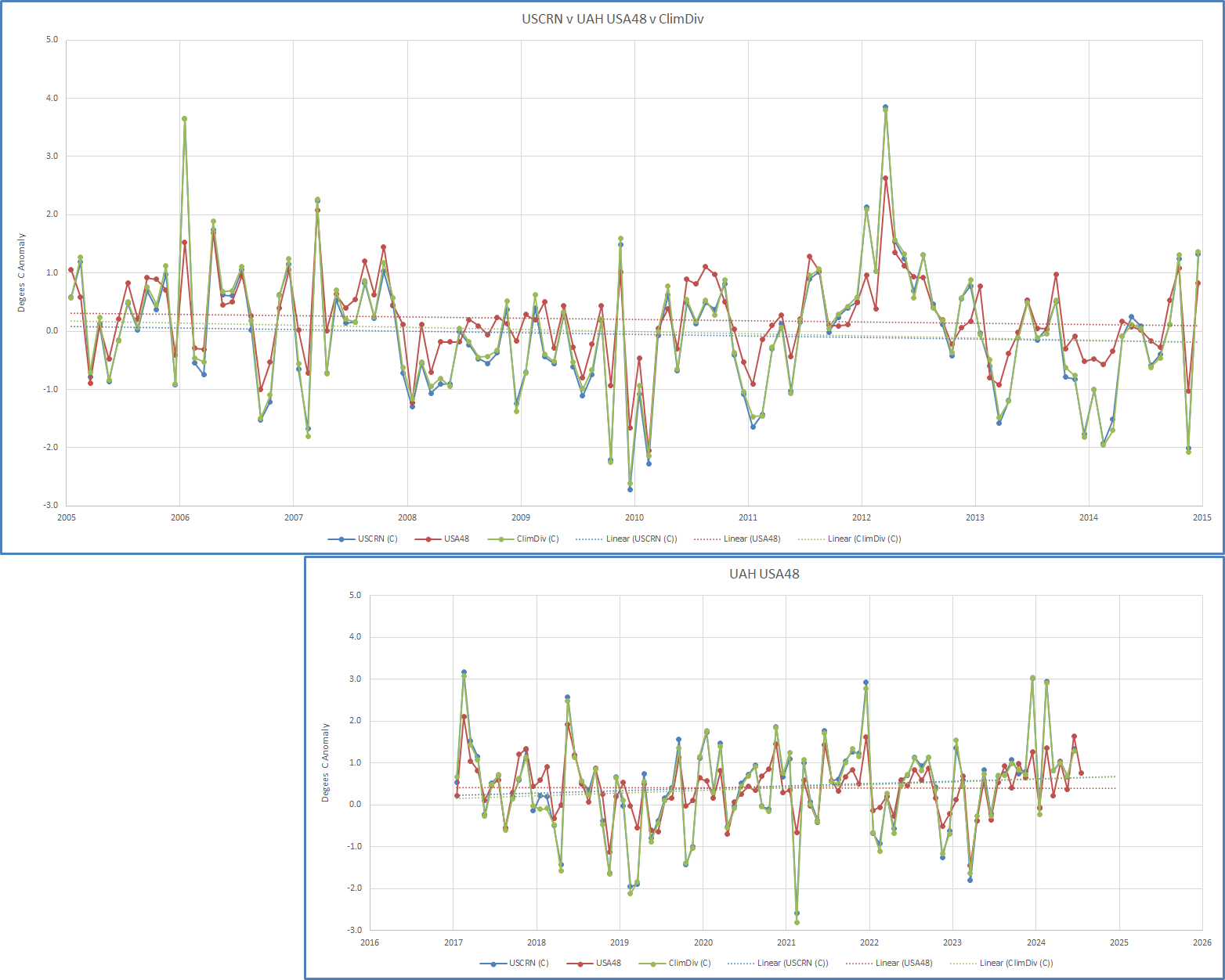 Even if you use “anomalies” the error bars remains the same.