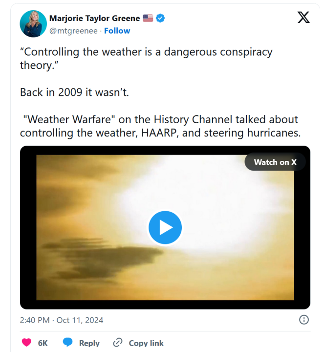 While the focal point of this article will be to address and challenge the prevailing narrative that Helene and Milton were caused or “fueled” by human-caused climate change, I would like to hit pause on that and take a moment address the conspiracy theories regarding “weather manipulation” that seem to predominantly come from pundits on the right.