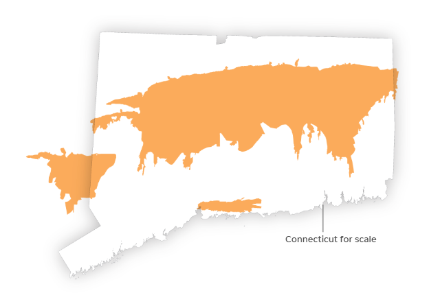 For a size comparison, this is what the burn area of the Smokehouse Creek Fire would look like compared to the state of Connecticut: