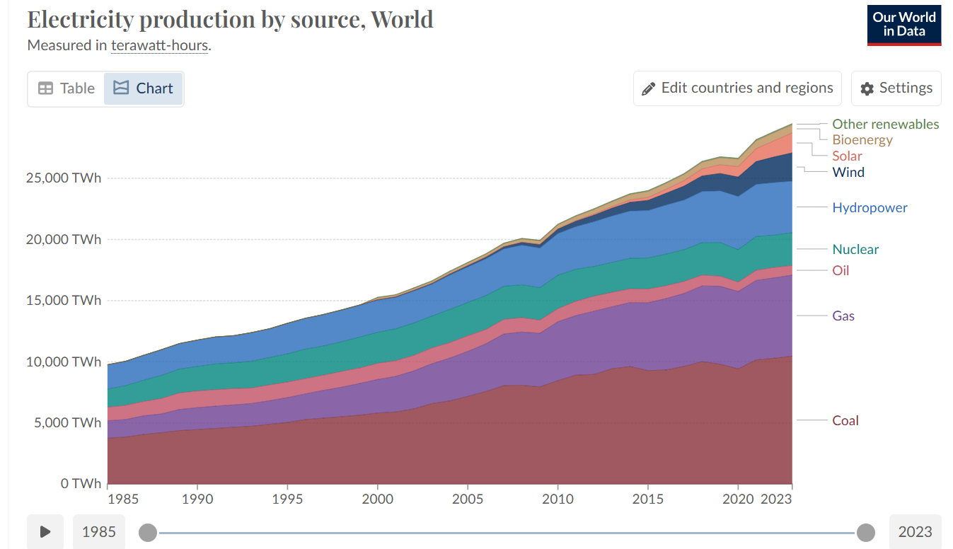 Yep, they show that coal continues to provide some 80-82% of all world electricity. !