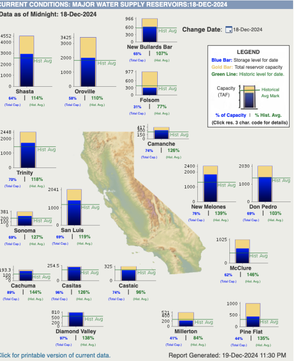 California has successfully manufactured a permanent drought emergency. You watch, the first cut for water allocations in 2025 will be in the 15% range and eventually raised to circa 40%.