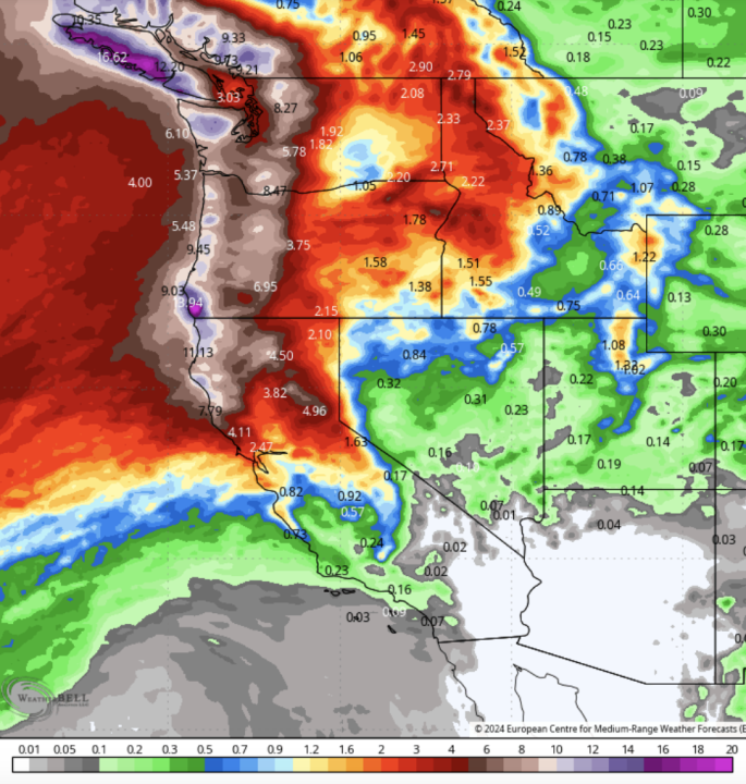 The result or this atmospheric river and some weaken cousins this week, will be massive rainfall on the West Coast.