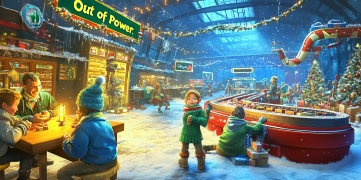 Meanwhile, the North Pole workshop faced its own crisis. The elves, used to working around the clock, found themselves rationing electricity. The wind and solar systems couldn’t meet demand, so the workshop went dark during windless, cloudy days. Even the chocolate fountains—a crucial morale booster for the elves—had to be turned off.