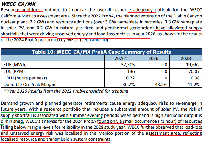 I read quite a lot of the report. The article as repeated above in WUWT does not, to my mind, represent the report very well. The article concentrates on California’s electricity deficit well into the 2030s with a mention of 2029, whereas the cited report is full of various regions hitting shortfalls in 2025, 2026 and 2027. The report is basically saying that things are going to go very wrong very soon.