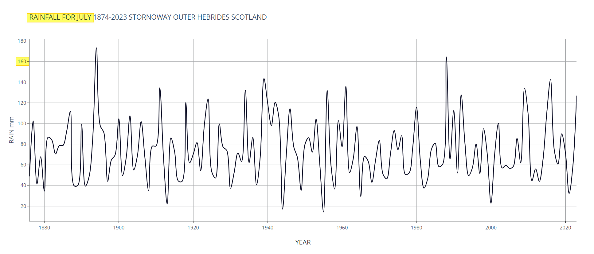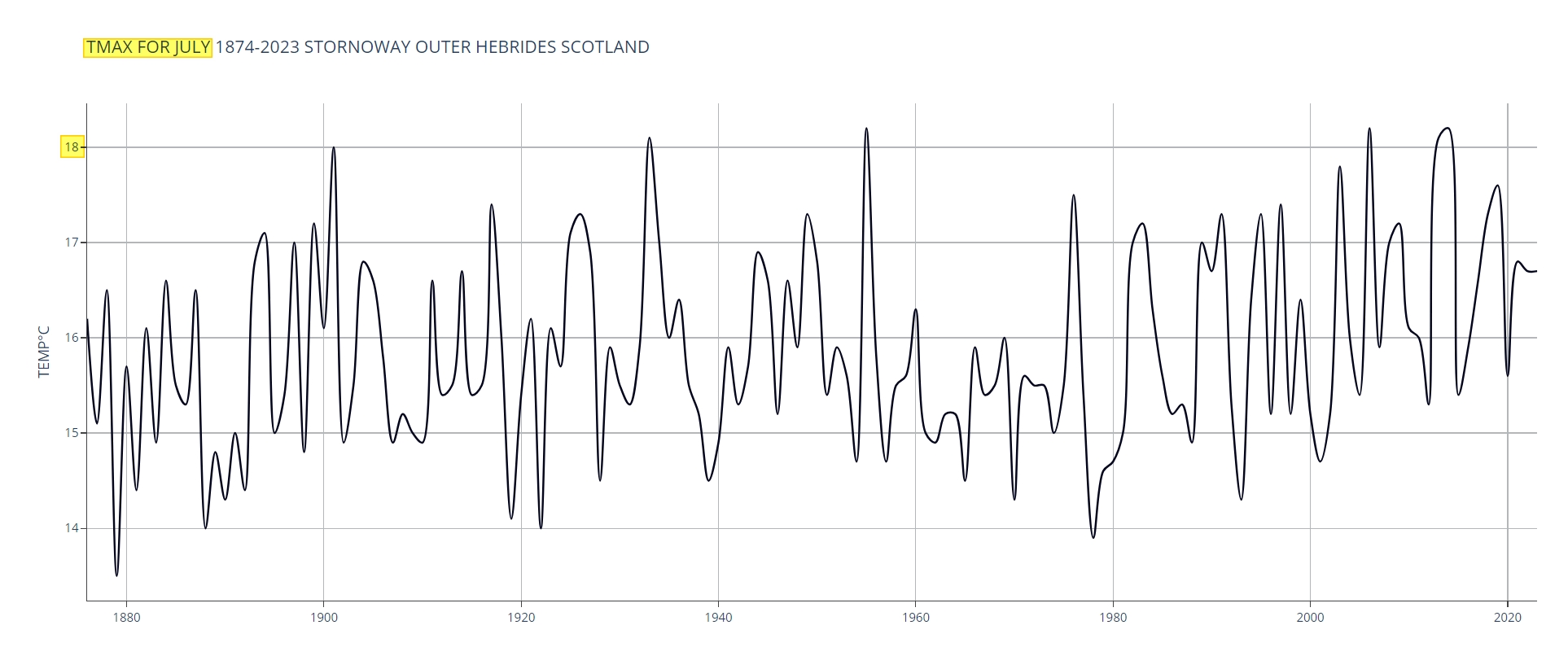 I have to assume that Lews Castle is surrounded by acres of black tarmac, and has always had jets idling near the measurement site.