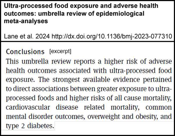 The “review” mentioned is Lane et al. 2023 [ pdf here ], which comes with a link to the BMJ Editorial “Reasons to avoid ultra-processed foods”. The editorial includes this statement: