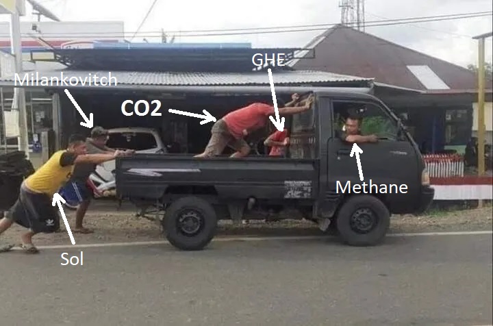 This all goes back to the idiotic claim by climate science that CO2 ‘TRAPS” heat. It doesn’t trap it. It only changes the heat transport. And that heat transport will ultimately result in an equilibrium between heat in and heat out. Again, the only source of heat in is the sun.