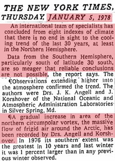 Back in the 1970s, scientists and politicians were not worried about global temperatures per se, they were worried about the very real impacts of global cooling on weather and agriculture.