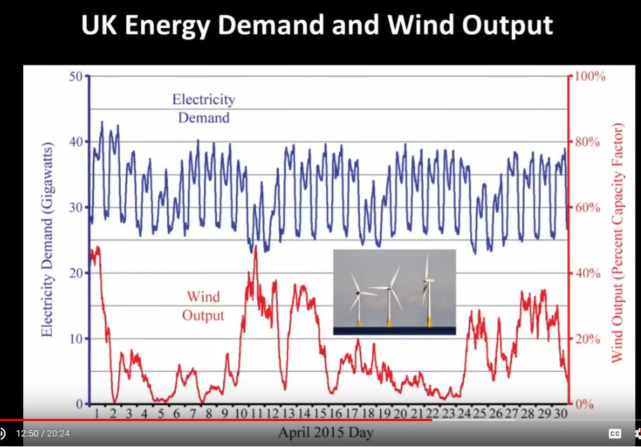 One feature of electricity is that it is used in real time, and the grid must be balanced second to second. Britain is committed to ‘green electrons’ first and foremost, so wind has grid priority. This produces bald men who have torn out their hair, trying to balance the grid while wind is fluctuating as shown in the plot, and 10% of that is unregulated. The quality of power suffers and the electric appliances are at risk in every country, not just Britain, as the quality of the electrical power declines.