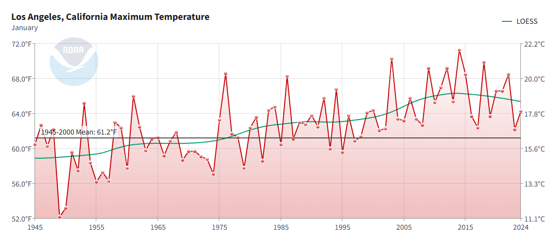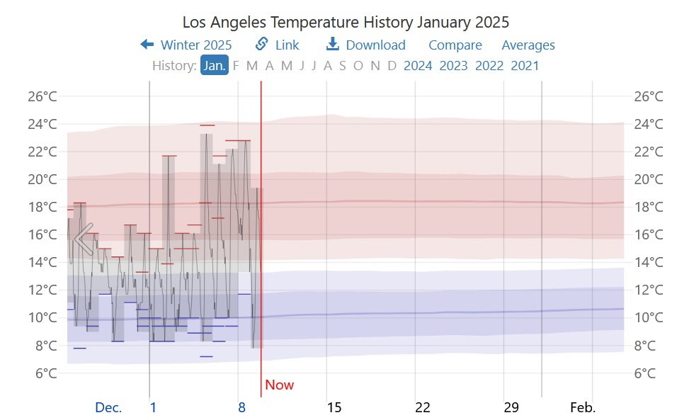 It’s more than a little ironic that California, which is supposedly a national leader in climate action, should be plagued by these wildfires in general. One would think with all the taxes, regulations, restrictions, etc. the state would have any wildfire threats under control. Or maybe the excessive fossil fuel consumption in the surrounding areas and in countries far beyond its control is causing these events in the first place and it’s up to governments, consumers, and construction companies to take precautions that will defend built-up areas from the vulnerability that they’re showing in areas like the LA region is currently experiencing. Or maybe it’s a case of human activities having no effect in triggering or preventing such catastrophes, just as they can’t prevent earthquake and tsunamis.