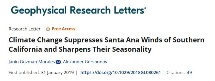 Climate Change Suppresses Santa Ana Winds……