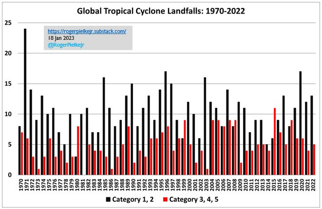 There’s a better than even chance major tropical cyclone occurrence increased since 1980 but we dont know what they’ll do long term. And we dont know what lesser cyclones will do long term either.