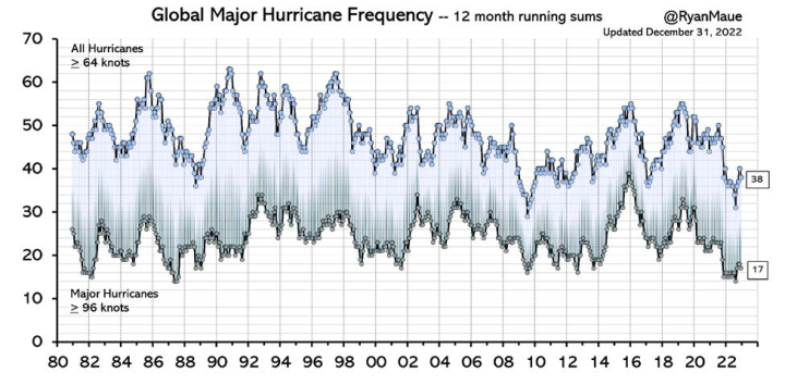 However, this narrative overlooks the IPCC’s cautious stance on the issue. The IPCC AR6 finds only low confidence in detectable increases in hurricane intensity globally. While there is moderate confidence in increased peak wind speeds for a subset of tropical cyclones, these trends are not consistently observed across all ocean basins. Moreover, the number of global cyclones has either decreased or remained flat. Mann’s narrative about a world of ever-stronger storms is more rhetorical than rigorously scientific.