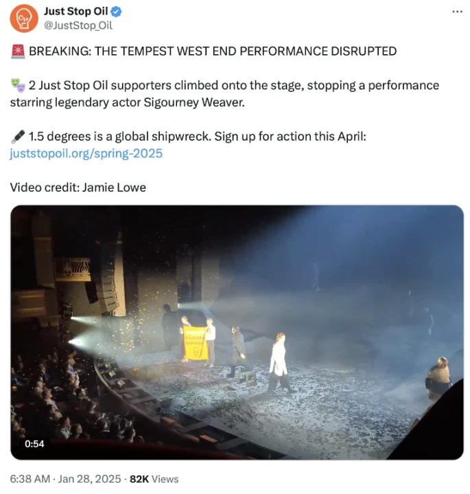 WATCH: Climate Doomers Fire Confetti Cannon at Sigourney Weaver London Play
