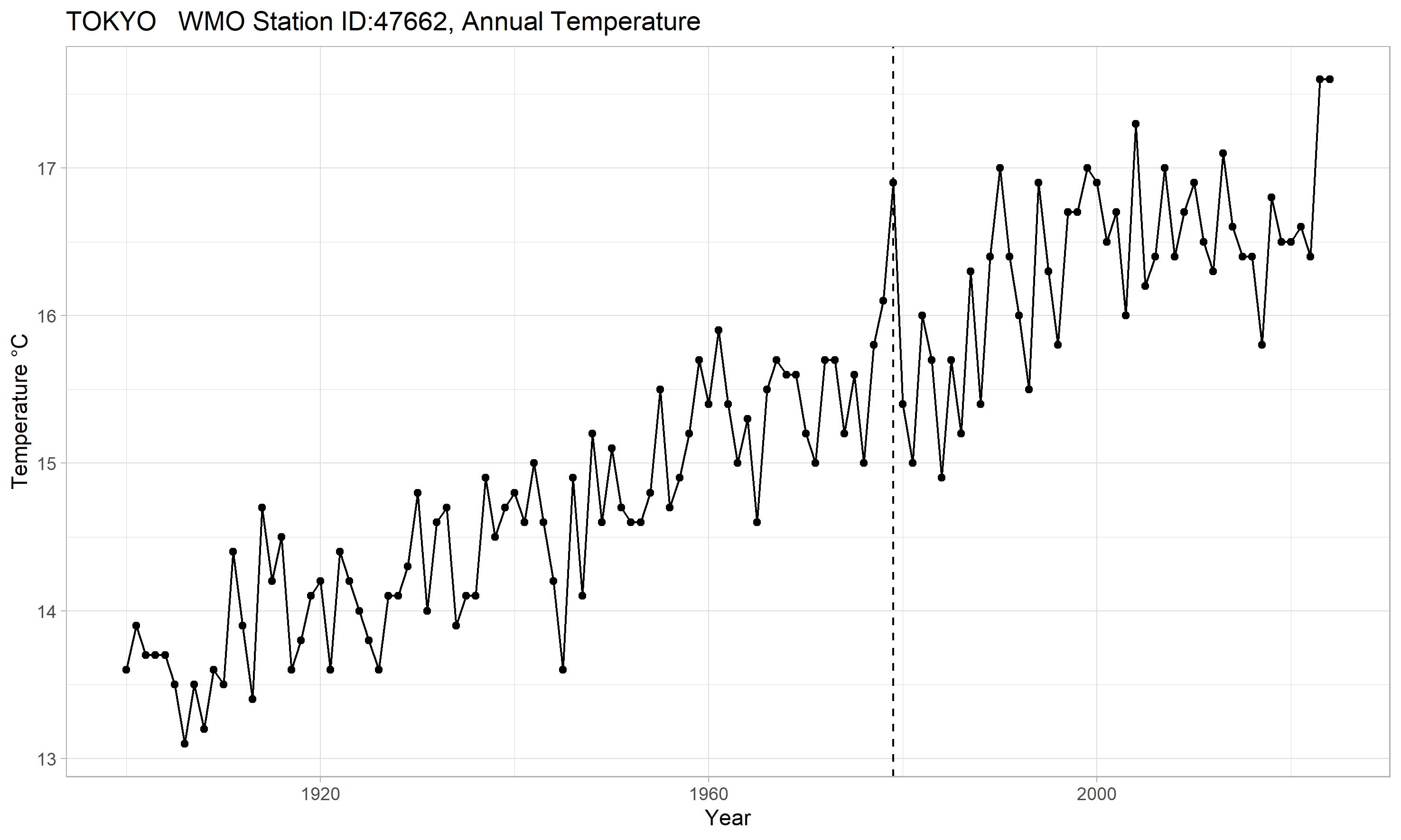 ”a 45-year temperature trend of 1.5 degrees C per decade”