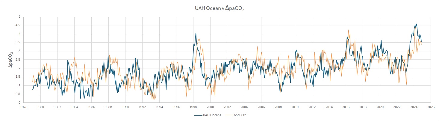 It appears to be mostly you that claims UAH satellite data has any asserted dependence on atmospheric CO2 concentration levels or changes thereof.