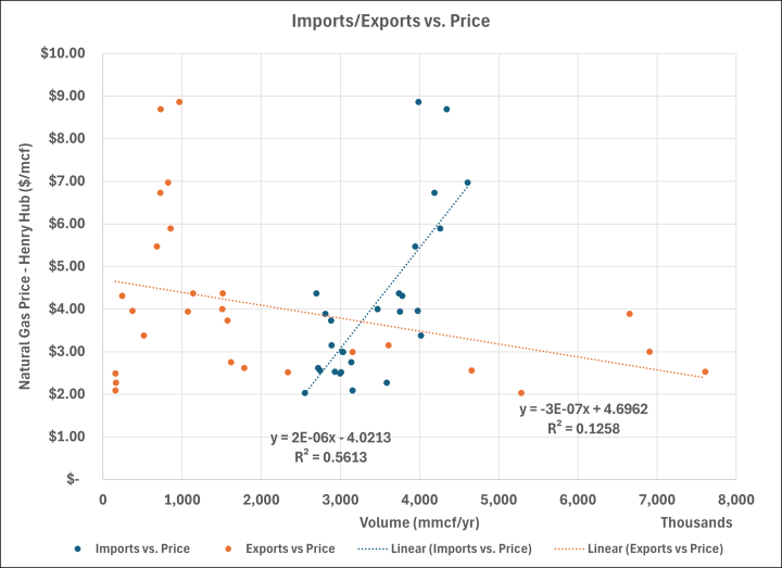 Imported natural gas drives up prices – Because we are a net importer when we produce less than we consume.