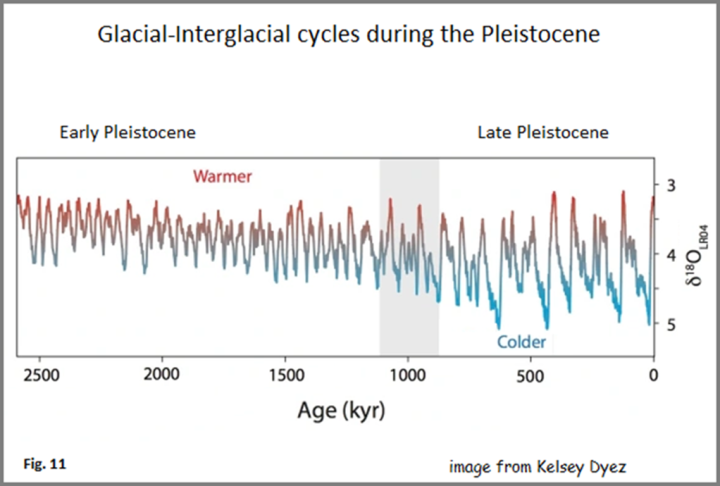 Proxies generally establish that the ~41ty glaciation cycle from 2.6mya on switched to ~120ty about 1mya. Nobody has a good reason why. Lots of unconvincing speculations—looked at them all over the past decade.